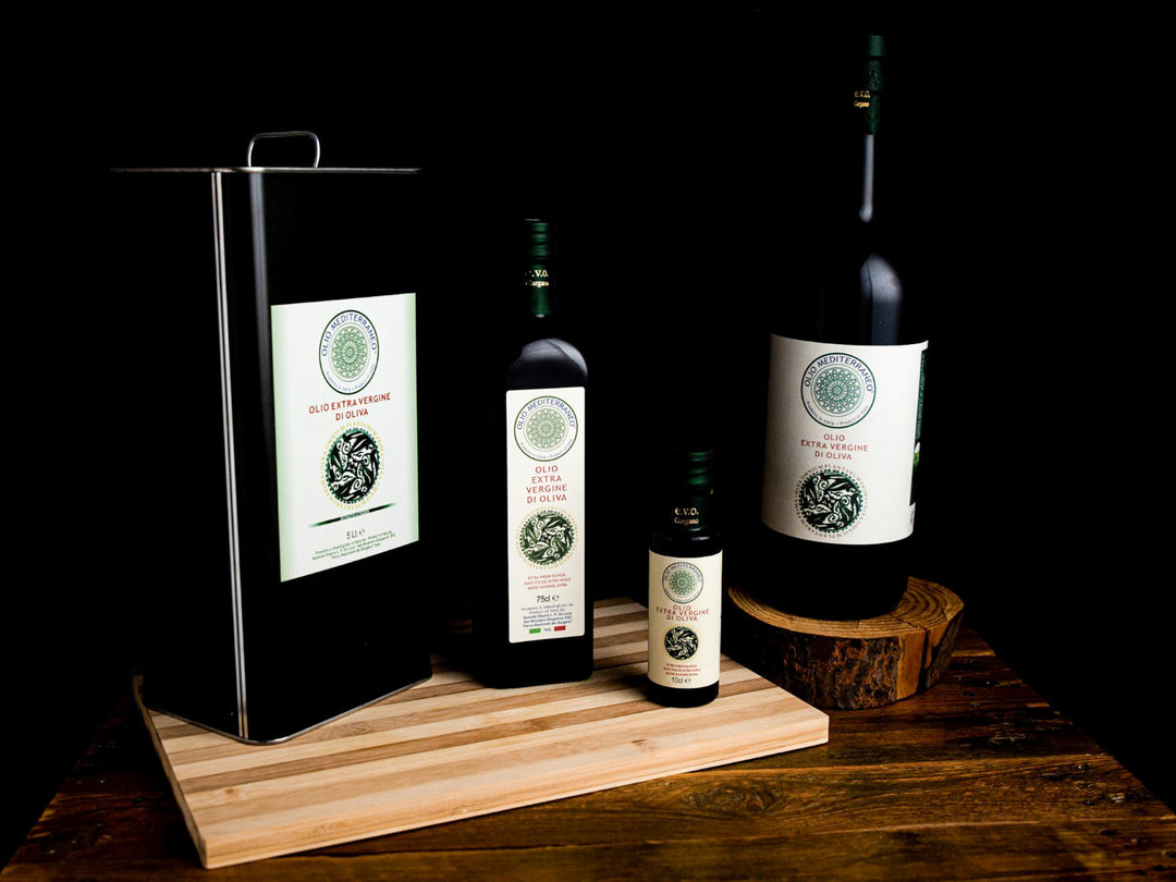 • l'olio extravergine di oliva dolce ed equilibrato tipico della Cultivar Ogliarola garganica e Peranzana;